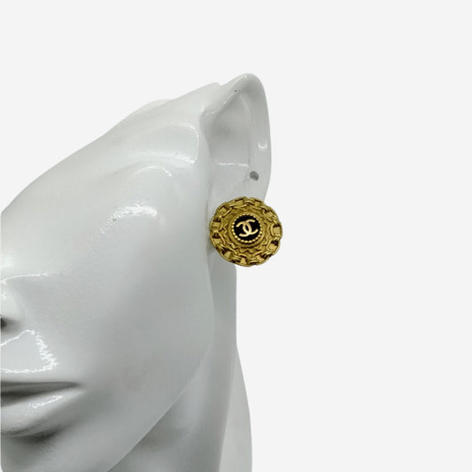Chanel 24k Gold-Plated Black Clip-on Earrings