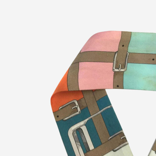 Hermes Le Allure Peach and White Silk Twilly