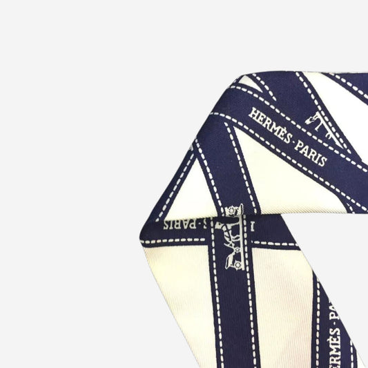 Hermes Bolduc White and Navy Silk Twilly