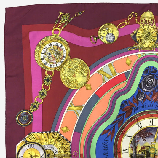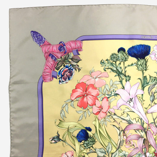 Hermes La Ronde des Heures/ Parmi les Fleurs Silk Scarf, Carre 90