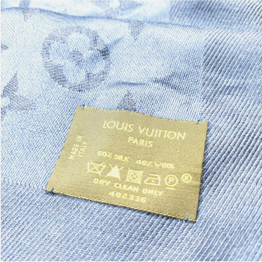 Louis Vuitton Blue Classic Monogram Silk/Wool Scarf / Shawl