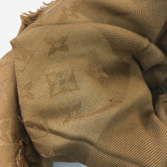 Louis Vuitton Camel Classic Monogram Silk/Wool Blend Scarf Shawl